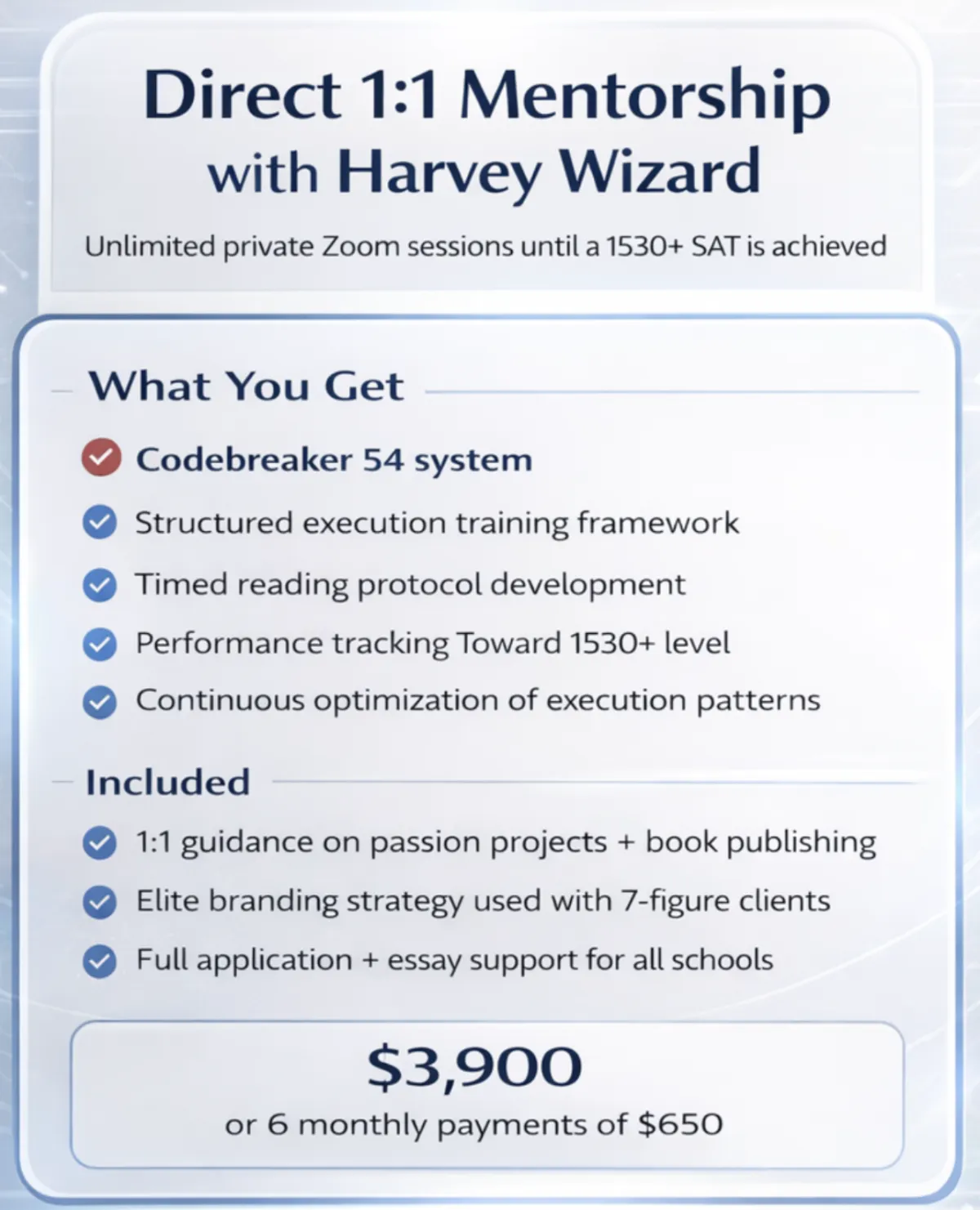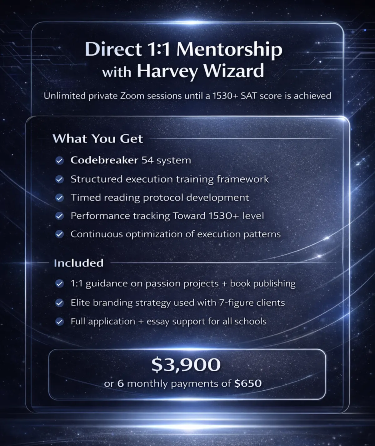 SAT Codebreaker 54 is a structured 1:1 mentorship system that trains SAT performance into automatic execution.